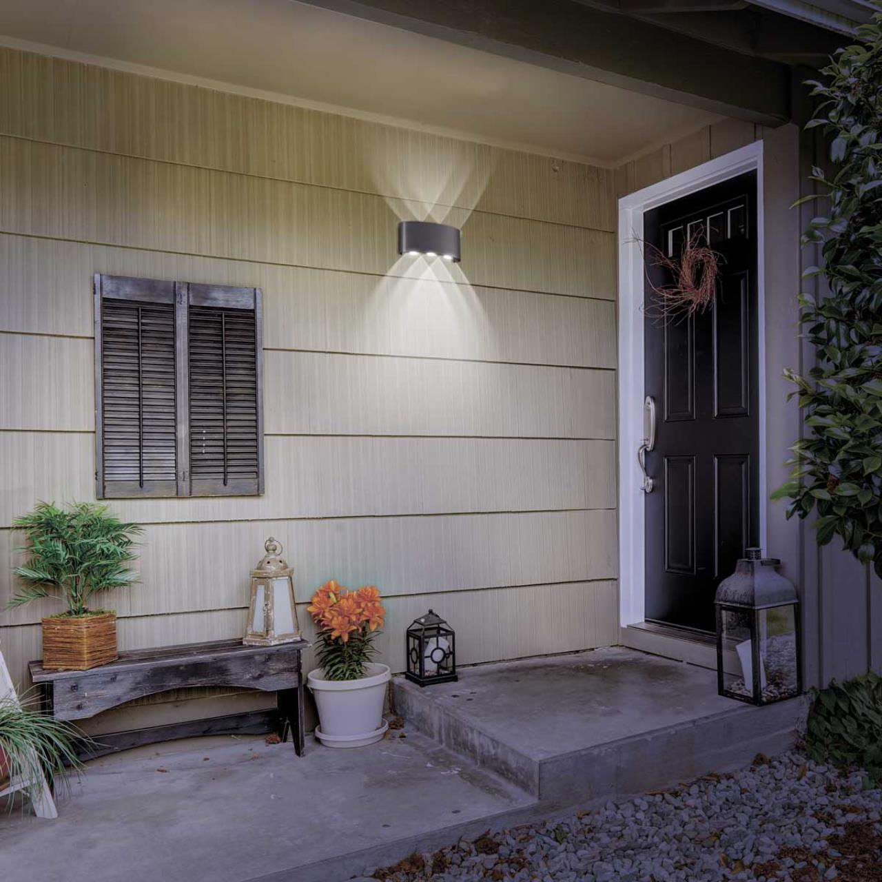 Придайте Вашему экстерьеру нотку современного стиля с настенными светодиодными светильниками CALLE в самом популярном тёмно-сером цвете с ярко-выраженной геометрией лучей. Такой эффект достигается благодаря оптическим линзам в корпусе светильника.