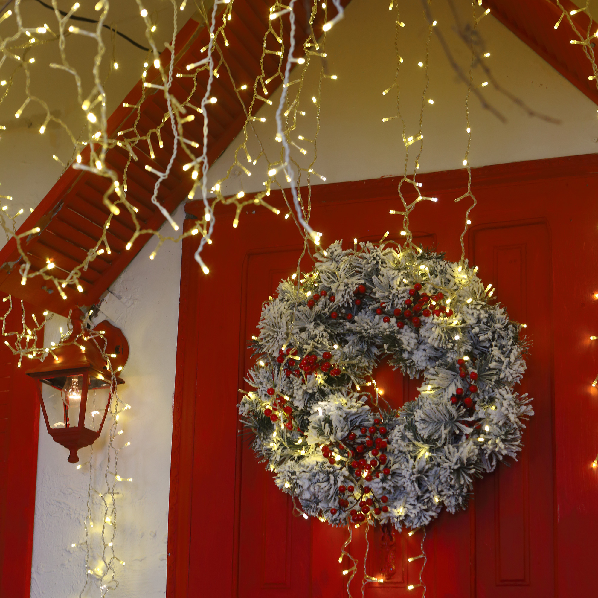Праздничная гирлянда бахрома теплый белый 3*0,6 м IP65 100-101