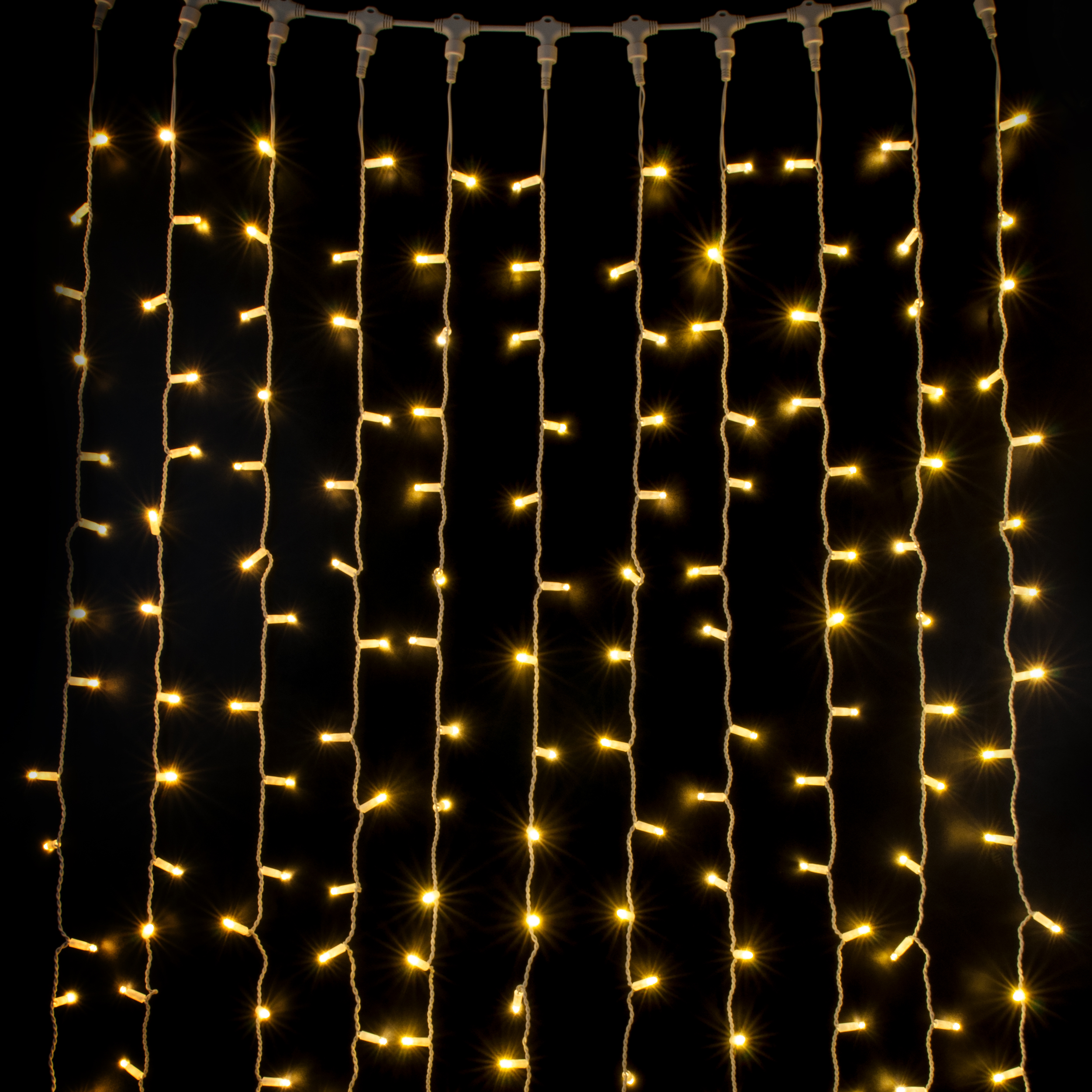 Праздничная гирлянда занавес теплый белый с эффектом мерцания 2*3м IP65 200-101