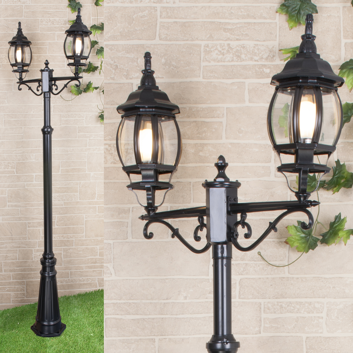 Уличный двухрожковый светильник на столбе IP33 NLG99HL004 черный