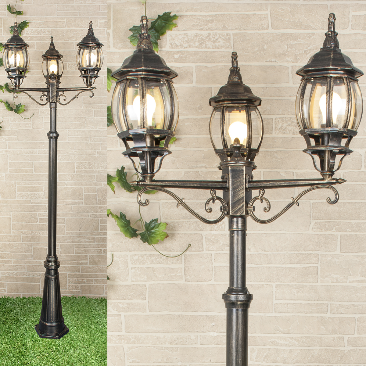Уличный трехрожковый светильник на столбе IP33 NLG99HL005 черное золото