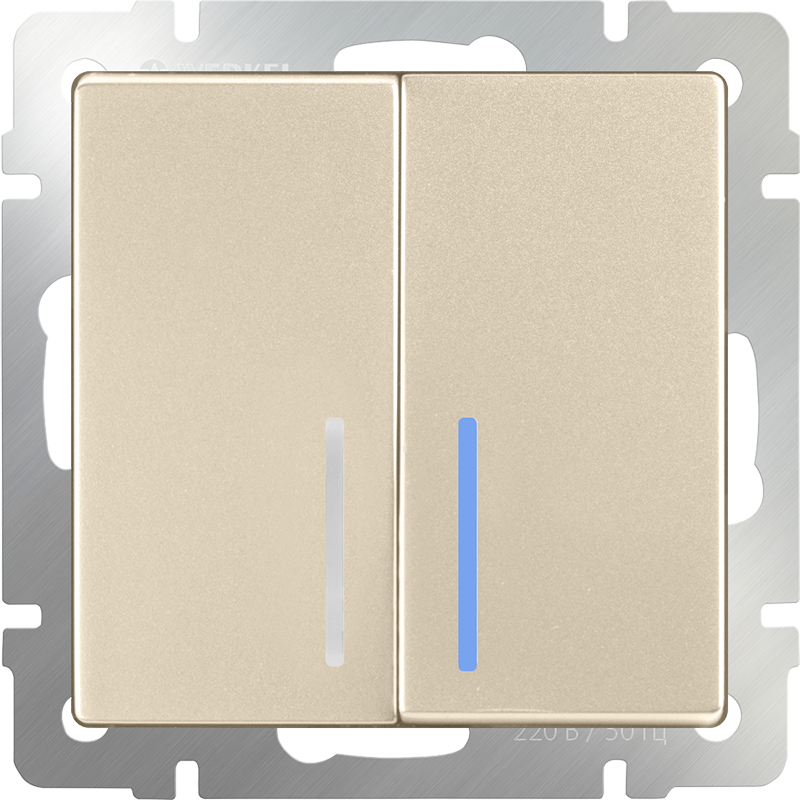 Выключатель двухклавишный проходной с подсветкой (шампань) WL11-SW-2G-2W-LED